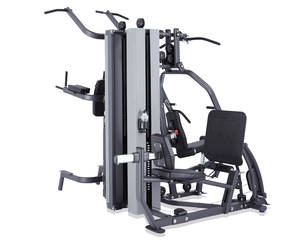This Steelflex MG200B Multi-Gym state-of-the-art multi-functional training system provides ergonomics, efficient movements, for effective results thus creating a superior workout experience. Perfect pec training arms has fully adjustable range of motion. Includes Leg Press/Calf Press/Cable Column stations can perform pull ups, dips, leg press and knee raises that allows the users to build their way to a stronger body.