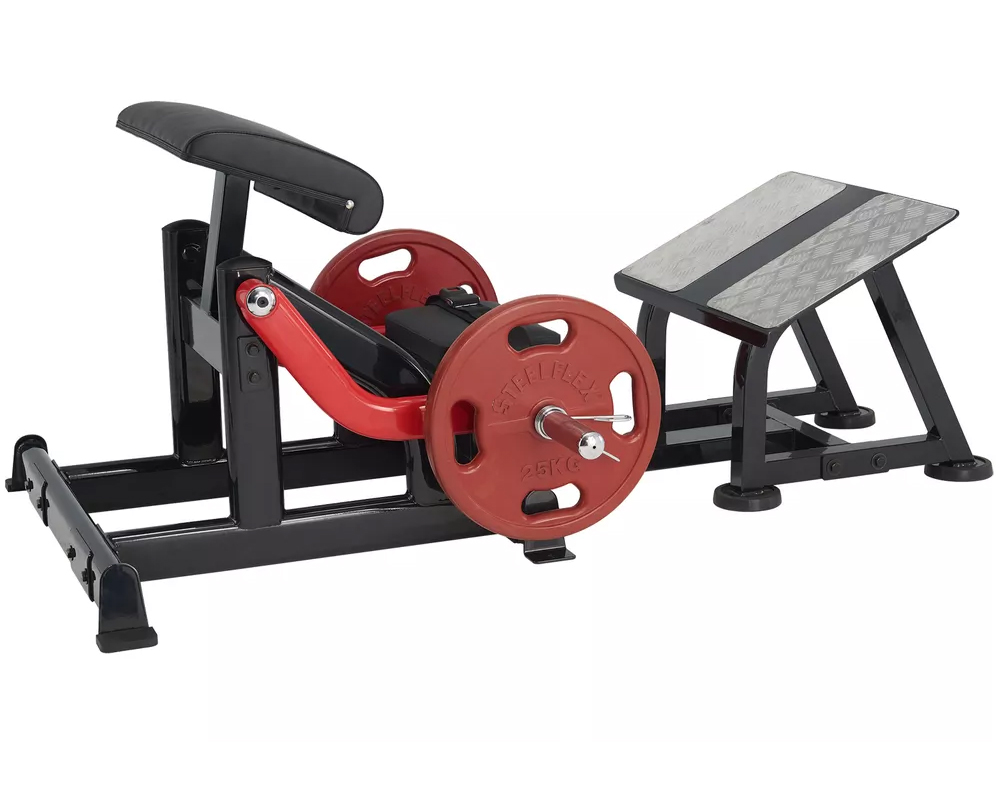 The Steelflex PLHT Hip Thruster Machine uses an affordable plate-loaded resistance system. This system allows users and facilities to incorporate their existing Olympic weight plates for resistance.