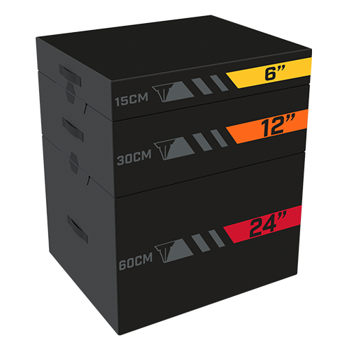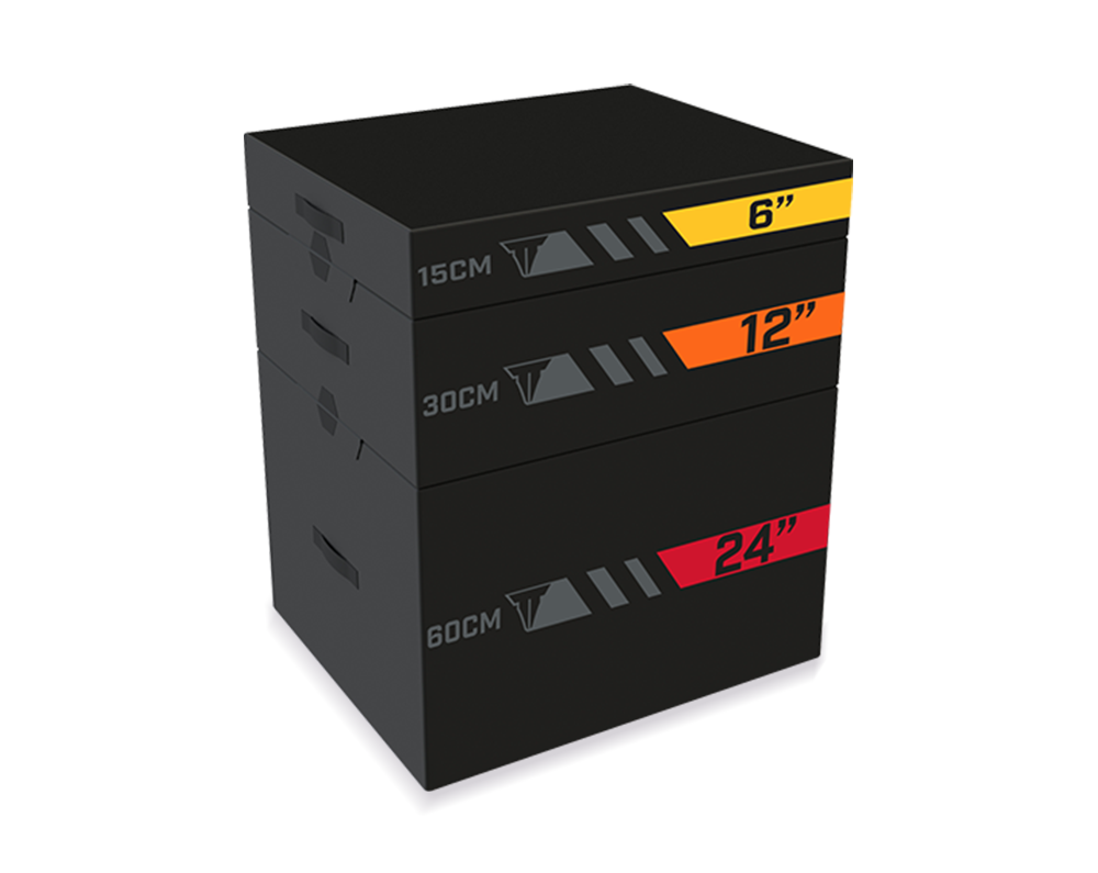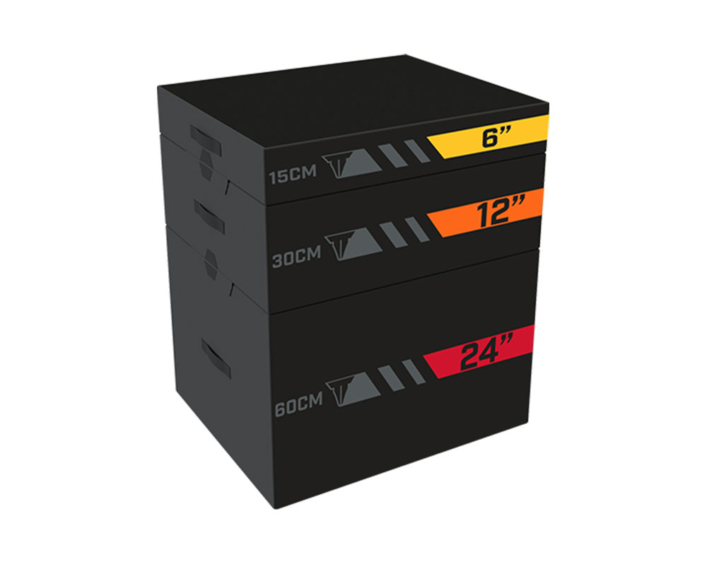 - Firm foam boxes are stackable, providing seven jump heights (6”, 12”, 18”, 24”, 30”, 36” and 42”.)