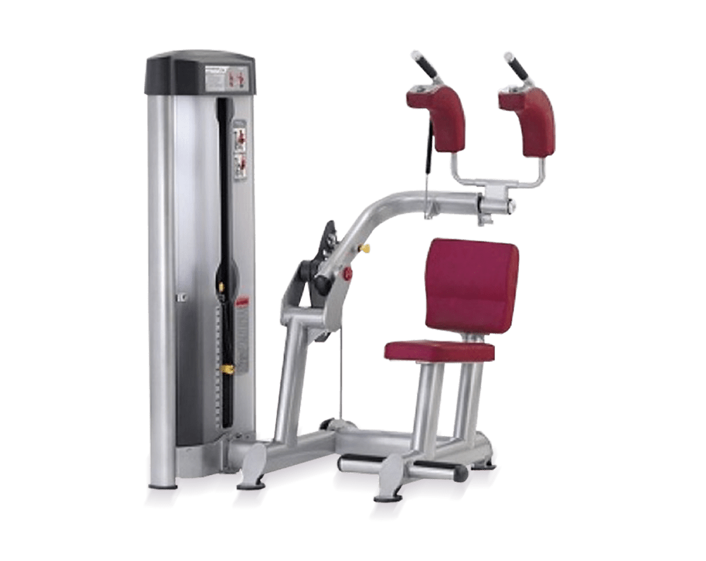 - Contoured lumbar pad encourages pelvic stabilization and isolation of abdominal region.