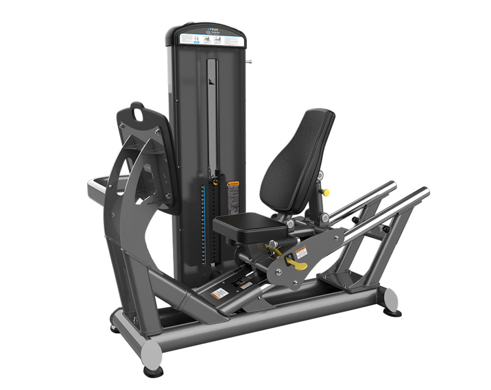 The True Fitness FUSE-0300 Leg Press. Easy entry and exit adjustable seat assembly is angled 20 degrees and features a 3 position back pad for greater hip extension.