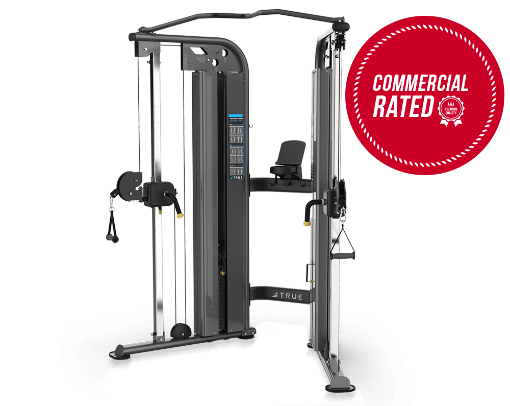 The True Fitness SM-1000 Functional Trainer delivers an all-inclusive solution to meet the space and budget requirements for a variety of facilities, from community centers to multi-family living to hotels or resorts.