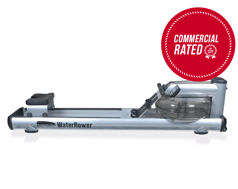 The WaterRower M1 LoRise S4 Rowing Machine is designed for commercial usage, in gyms, exercise studios and other such places, and has a lower to the ground rowing position. The tubular steel exercise machine replicates actual rowing motion and uses water resistance that produces the sound of waves to make your workouts as close as possible to rowing on water.